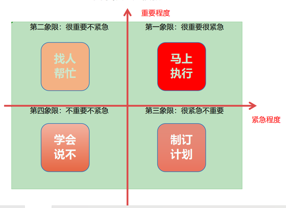 - 根据以上日程表运用一定时间后,自己进行回顾,调整,依据PDCA(Plan——Do——Check——Action)来调优,书本提示是:计划——执行——检查——改进——再计划。